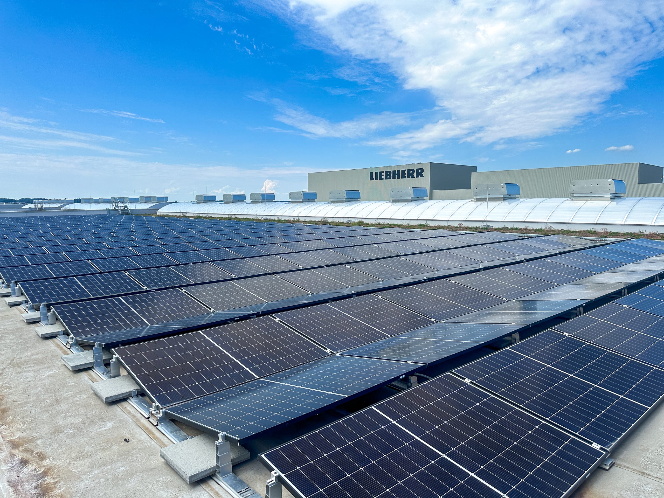 Im Rahmen des Projektes übernahmen wir die Planung, Installation und Inbetriebnahme der Anlage, um Liebherr auf dem Weg zu einer nachhaltigeren Energieversorgung zu unterstützen. Mit der Installation von 2166 hochwertigen Solarmodulen profitiert das Unternehmen nun von sauberer und kosteneffizienter Solarenergie. Die Gesamtleistung der Anlage beträgt beeindruckende 920,55 kWp, wodurch nicht nur die Umweltbilanz verbessert, sondern auch die Energiekosten eingespart werden können.