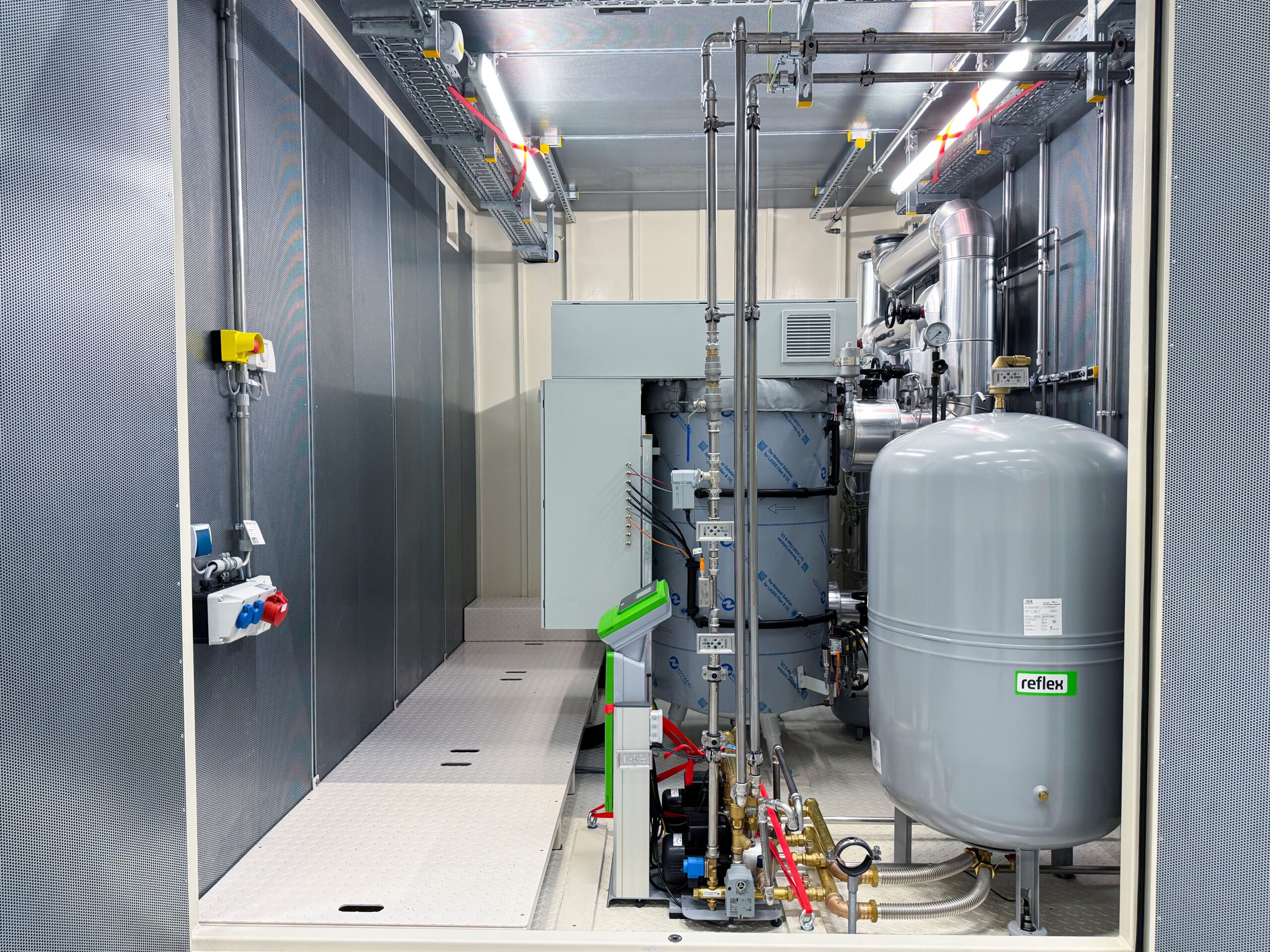 Durch den Einsatz von modularer Containerbauweise konnte eine kompakte, flexible und kosteneffiziente Lösung geschaffen werden – ideal für industrielle Anwendungen mit hohem Anspruch an Energieeffizienz und Nachhaltigkeit. Die durchdachte Planung ermöglicht eine einfache und schnelle Inbetriebnahme vor Ort.